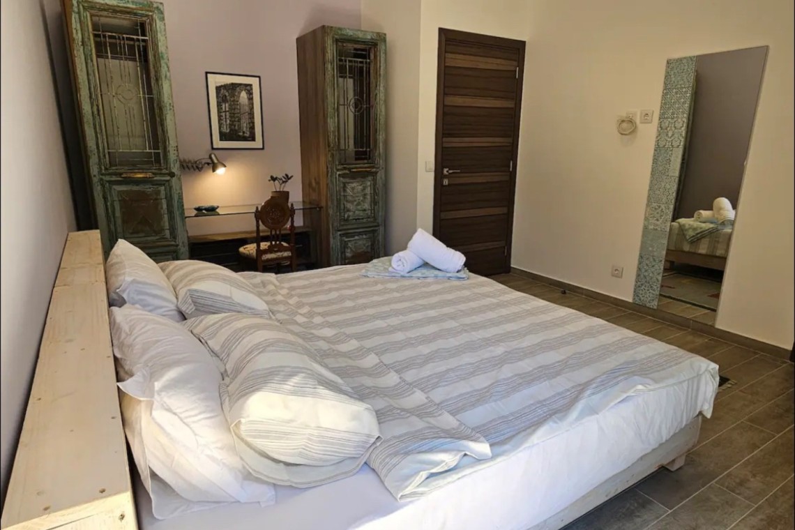 A breathtaking Retreat with 3 bedrooms Fitting 6 Guests. Pool Available With A Sea & Mountain View. A Garden Around The House.